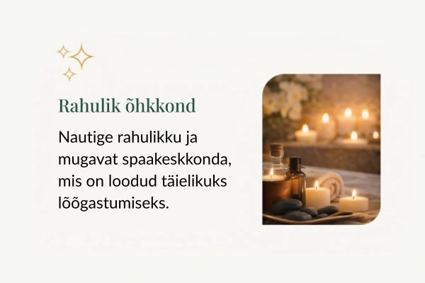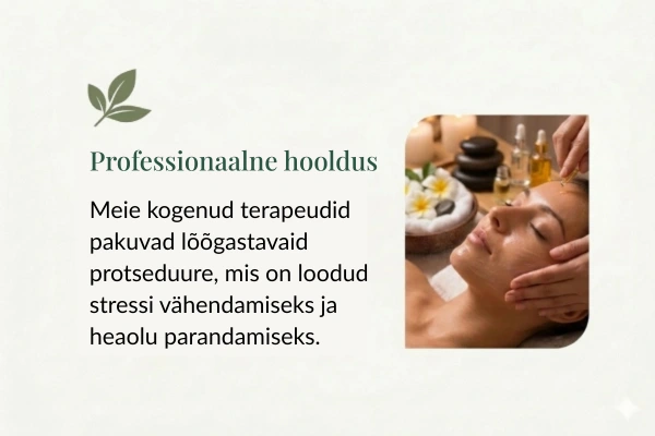 Naudi värsket nahka ja täielikku lõõgastust meie näohoolduse ja massaaži paketiga – see värskendab su välimust ja leevendab stressi.