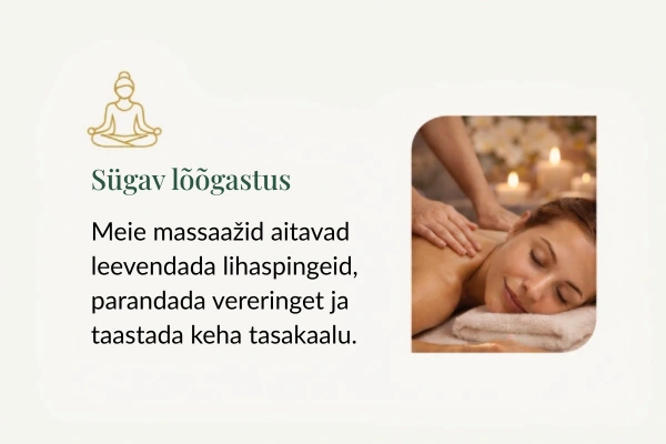 Klassikaline massaaž, mis leevendab lihaspingeid, parandab vereringet ja soodustab lõõgastumist.